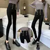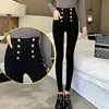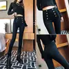 Moda feminina calças 2021 outono nova alta elástico duplo breasted apertado encaixe de cintura alta emagrecimento calças femininas lápis