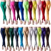 Venda quente 2021 mulheres cor sólida fluorescente brilhante calça leggings tamanho grande elastano shinny elasticidade calças casuais para a menina