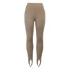 Mulheres com nervuras de malha leggings moda bege cintura alta algodão fitness calças básicas feminino casual all match estiramento leggings magros