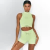 Nova cor de fitness gola alta colete hip shorts yoga conjunto roupas feixe caindo terno esportivo feminino