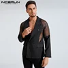 Blazer masculino de malha com transparência, blazer da moda com manga longa, roupa de rua casual para homens, 2021