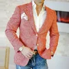 Moda masculina blazer fino cor de rosa entalhado lapela manga longa único breasted botão bolso casual casaco jovem primavera para o sexo masculino colth