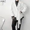 Pfhq 2021 nova moda masculina estilo coreano cor sólida placket assimétrico um botão desgastado cordão terno outono inverno 21a6305