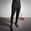 2020 novo negócio vestido calças moda dobras casual fino ajuste casamento escritório social terno calças streetwear traje homme