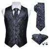 Masculino clássico preto paisley jacquard folral coletes de seda lenço gravata colete terno colete masculino ropa para hombre