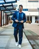 Azul conjuntos de ternos masculinos feitos sob encomenda 2 peças estilo causal streetwear blazer blazer blazer formal negócio baile festa traje homme