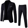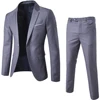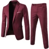 2 Pçs/set Terno Homens Plus Size Homens Cor Sólida Botão de Lapela Manga Longa Fino Terno de Negócio ternos de roupas de Trabalho De Negócios