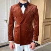 2 pçs peak lapela casaco feito sob encomenda laranja veludo blazer calças brancas conjuntos de terno masculino padrinhos festa de casamento vestir jaqueta + calças