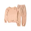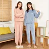 Pijamas femininos outono e inverno nova cor sólida casual roupas vestíveis em casa mais pijamas topos grosso veludo coral quente terno