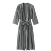 Vestido de quimono cinza feminino quimono robe homewear nightwear sexy mini sleepwear camisola confortável casual macio casamento robe