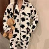 Veludo vaca impressão pijama mulher inverno quente duas peças conjunto engrossar pijamas para femme lounge wear calças ternos