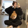 Outono inverno quente flanela roupas femininas pijamas conjuntos grosso coral veludo manga longa dos desenhos animados pijamas conjunto menina kawaii