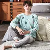 Unisex flanela pijamas novos homens inverno quente velo casais pijamas conjunto amantes camisola bonito dos desenhos animados pijamas casa roupas
