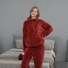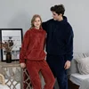 Pijamas de flanela para mulher outono e inverno cor sólida casal homewear pulôver espessado pijama calças de veludo coral pijamas