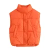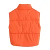 Casaco de inverno para mulher za 2021 moda casual laranja acolchoado acolchoado colete vintage sem mangas zip up feminino casaco chique topos
