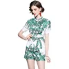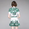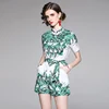 2 peça conjunto feminino verão único breasted o pescoço shorts casuais designer faixas camisa fina manga impressão escritório senhora elegante causal