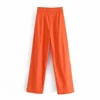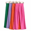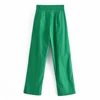 2021 za calças compridas femininas vintage, calças compridas casuais com cintura alta e bolsos laterais retas, calças femininas chique