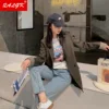 Alta qualidade blazer jaqueta feminina 21 primavera e outono nova versão coreana da cintura emagrecimento cor sólida solto roupas de moda