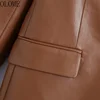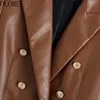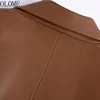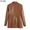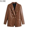 Olome moda feminina com abotoado casaco de blazer de couro do falso vintage manga longa com aba bolsos femininos veste