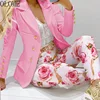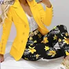Olome formal jaqueta & calças senhora do escritório outfits outono feminino duas peças conjunto de corrente impressão blazer casaco & calças conjuntos terno