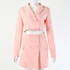 Outono feminino saia terno 2 peça conjunto de um botão curto blazer cintura alta irregular cruz fenda mini saia mulher duas peças do vintage
