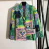 Design de luxo 2021 outono inverno novo vintage impressão lapela manga longa terno única linha botão de ouro casaco feminino mulher jaqueta