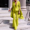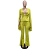 2021 calças femininas flare ternos com decote em v cores sólidas casual escritório blazer conjunto moda irregular babados manga blazer conjunto de duas peças