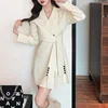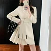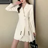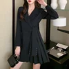 Blazers feminino comprimento médio ternos casaco moda plissado cinto cintura senhoras topos sólido botão de manga comprida blazer roupas femininas elegantes