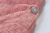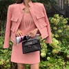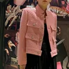 Tweed blazer para as mulheres botão bolsos rosa sólida primavera outono 2021 senhora do escritório elegante moda elegante vestuário de trabalho ternos negócios