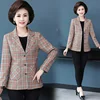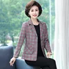 Mãe primavera e outono jaqueta estilo estrangeiro novo feminino all match blusa meia idade e idosos xadrez moda feminina ternos