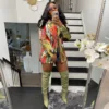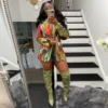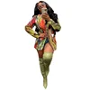 Mulher colorblock impressão blazers outono bolsos turn down colarinho único botão solto jaqueta de manga longa roupas finas streetwear