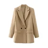 Tangada feminino caqui blazer casaco vintage entalhado colarinho bolso 2021 moda feminina casual chique topos 2021