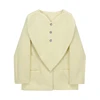 Dupla face casaco de lã feminino amarelo destacável grande coração pêssego feminino decote em v blazer temperamento solto personalidade senhoras terno
