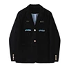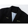 Terno de veludo preto jaqueta britânica feminino outono e inverno design senso nicho de alto nível temperamento solto estilo da faculdade casaco