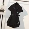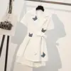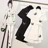Safari ternos para mulher manga curta terno conjunto 2 peças terno jaqueta borboleta arco cinto menina escritório casaco branco coreano bonito roupas