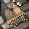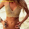 Biquíni crochê sexy 2021, artesanal, de malha, crop top, feminino, verão, traje de banho, camisolas, push up, praia, regata de alça, yoga