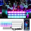 Carro atmosfera de luz 4 em 1 usb interior do carro luz ambiente app controle rgb música sincronização colorida led strip luz para carro universal
