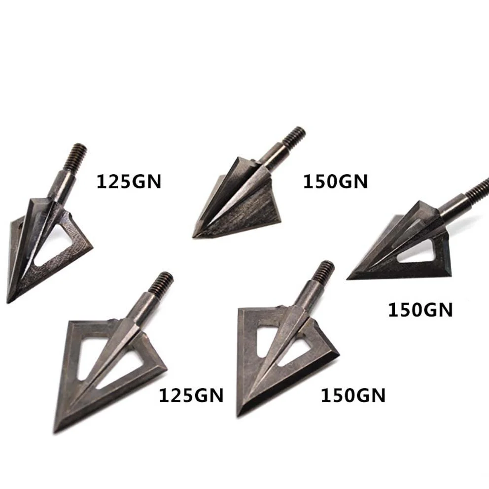 2 pçs 125 grão/150 grão caça seta cabeças dicas para recurvo/composto arco caça tiro aço inoxidável broadheads