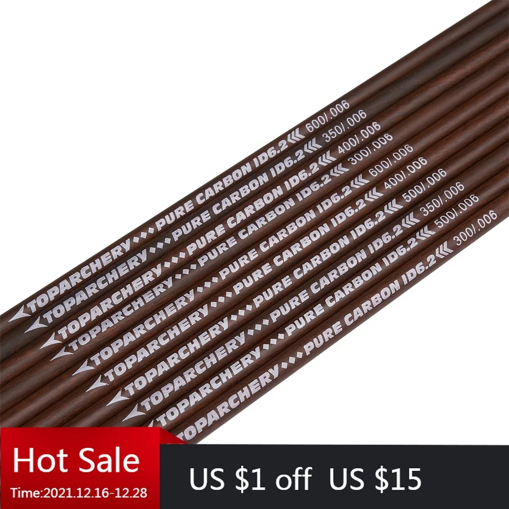 6/12/24 pçs puro carbono seta eixo espinha 300 350 400 500 600 id 6.2mm para recurvo arco compund e setas caça tiro