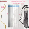 25lbs arco de tiro com arco tradicional poderoso recurvo com 6 pçs fiberglass seta para caça ao ar livre acessórios