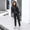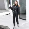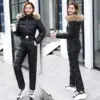 Inverno à prova de vento terno de esqui para mulheres engrossar quente uma peça snowsuit com capuz para baixo macacão parka neve fatos de treino bib