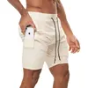 2021 novo masculino atlético shorts dupla camada de cores combinando fitness correndo respirável cor sólida calças capri
