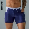 Heavywood verão troncos de natação secagem rápida masculina casual esportes à prova dwaterproof água praia boxer shorts com cordão bolsos calças primavera quente