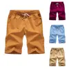 Venda quente casual men plus size verão shorts cor sólida linho drawstring fifth pants