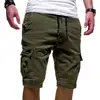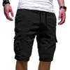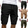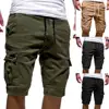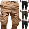 Moda verão casual masculino cor sólida shorts de carga multi bolsos cordão quinto calças curtas calças de trabalho esportivo para homem masculino