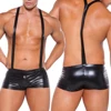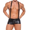 Sexy shorts masculinos apertados fitting underwear macacão de couro falso boxer briefs roupa de palco masculino calções casuais