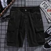 Carga shorts homens moda casual solto algodão carga multi bolso shorts masculino cor sólida zíper shorts streetwear