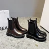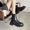 Botas de couro genuíno outono para mulher plataforma chelsea boot primavera botas de couro moda feminina fundo grosso preto bootie