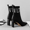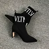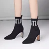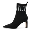 Botas femininas de salto alto sapatos de festa de moda feminina dedo do pé apontado letras de malha respirável meias botas tamanho grande 35 43