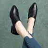 Zapatos de mujer feminino preto xadrez apontou toe couro do plutônio deslizamento em sapatos de salto quadrado senhora clássico sapatos doces